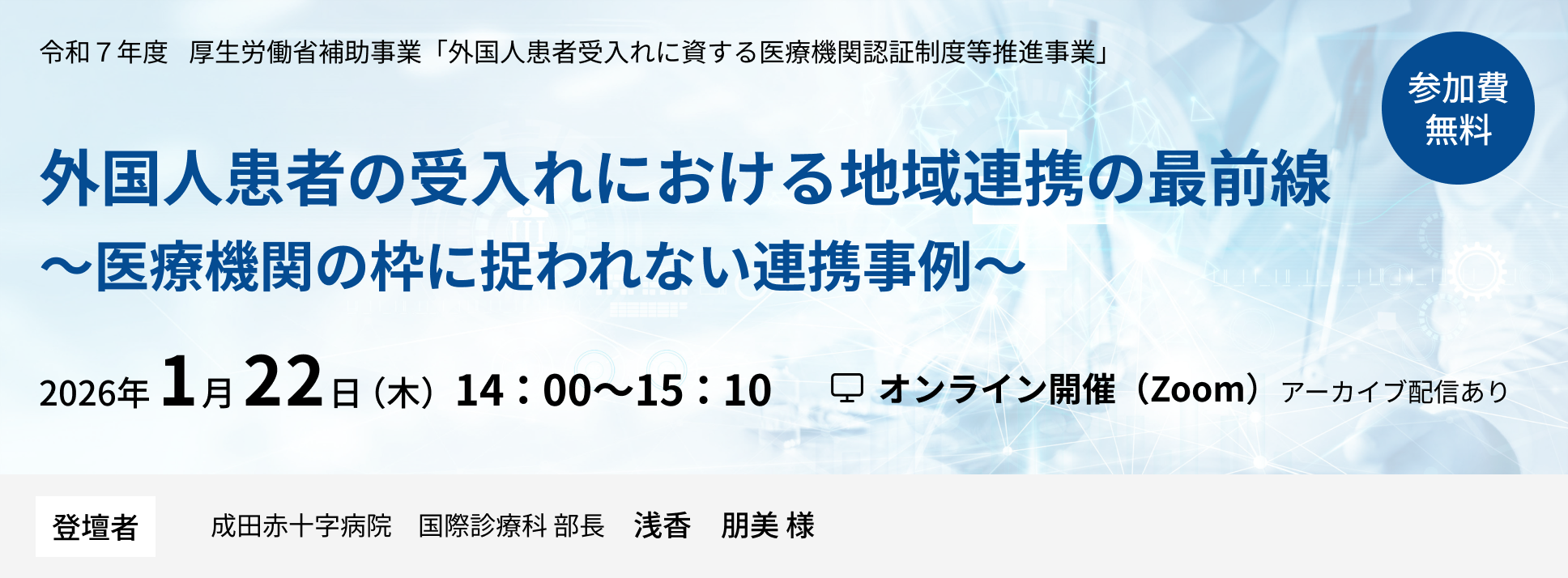 外国人医療オンラインセミナー ~医療現場における外国人患者受け入れ体制整備について~